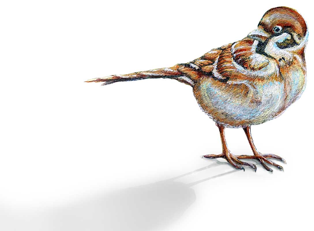 Abb.: KAB, Sperling. Ausschnitt, Öl auf Leinwand. Originalhöhe 8,5 cm.